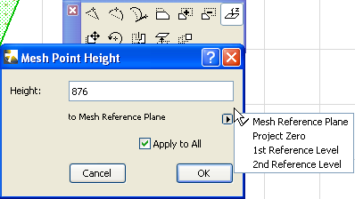 Checking the Apply to All box will set all Mesh points to this new height.