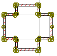 Elemente, die zu einem Hotlink-Modul oder einem XREF gehören, werden mit hohlen Quadraten angezeigt, deren Farbe automatisch festgelegt wird.