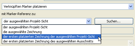 •die erste platzierte Zeichnung der ausgewählten Projekt-Sicht (d. h. die erste Zeichnung, die aus der Projekt-Sicht erstellt wurde, die Sie in der Verzeichnisliste nach Klick auf “Suchen ...” auswählen). “Erste” bezieht sich hier auf die oberste auswählbare Zeichnung im Navigator-Layoutbuch.
