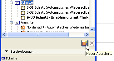 •oder durch Klicken auf den Button “neue Projektsicht” unten in der Navigator-Projektmappe; das ausgewählte Projektmappenelement (in diesem Fall ein Schnitt) bestimmt, welche Art von neuem Blickpunkt erstellt wird.