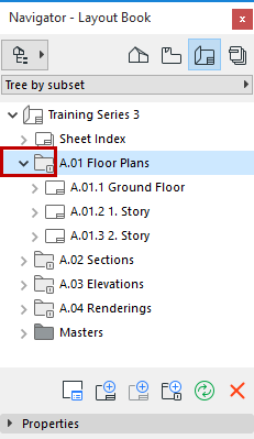 A subset is a folder inside the Layout Book. Subsets allow you to easily organize your layouts and to define numbering rules for them. When working in the Navigator or Organizer, you can place any Layout into a Subset simply by dragging and dropping it into place.