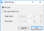 Open this dialog box from the Model Review Palette’s pop-up at the top right, from Design > Energy Evaluation > Operation Profile, or with the Options > Element Attributes > Operation Profiles command.