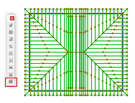 Select a reference roof surface on the floor plan. Choose Create multiple rafters from the Design > Roof Extras > RoofMaker menu (or select the second icon from the RoofMaker toolbox.
