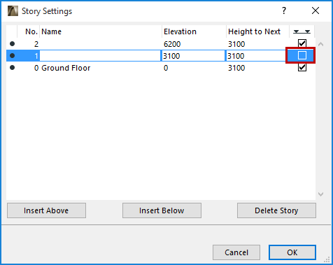 However, If you insert a new Story, you must place its Story Level dimension manually.