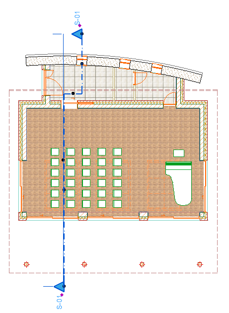 Utilizzare lo strumento Sezione per generare un punto di vista in sezione dell'Edificio virtuale, con un marker di accompagnamento.