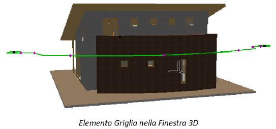 Gli Elementi Griglia possono essere posizionati o nella Pianta o nella Finestra 3D, ma possono essere visualizzati anche in Sezioni, Alzati, Alzati Interni e nel Documento 3D.
