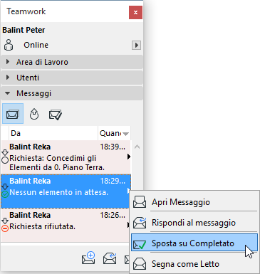•Sposta su Completato: fare clic per spostare questo messaggio nella lista Completati.