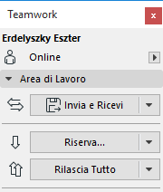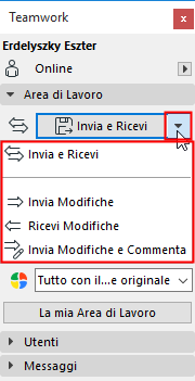 •Invia consente di unire al progetto sul BIMcloud tutte le modifiche eseguite a partire dall'ultima volta che si è utilizzato lo stesso comando.