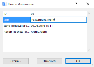 2.В диалоге Параметров Изменения укажите ID и имя Изменения.
