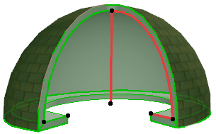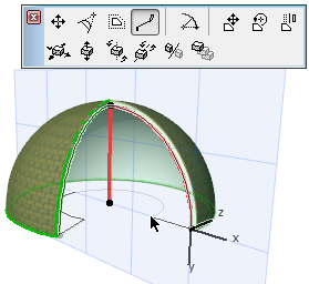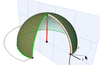Wählen Sie die Achse oder das Profil der Rotationsschale aus. Eine Ende der Achse ist an einem größeren Fixpunkt zu erkennen; dieser Fixpunkt gibt die Basishöhe der Schale an.