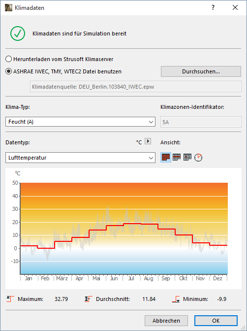 •ASHRAE IWEC, TMY, WTEC2 Datei benutzen: Klicken Sie auf Durchsuchen, um Daten aus Wetteranalyse-Dateien von einer externen Quelle (aus offenen Quellen wie z. B.