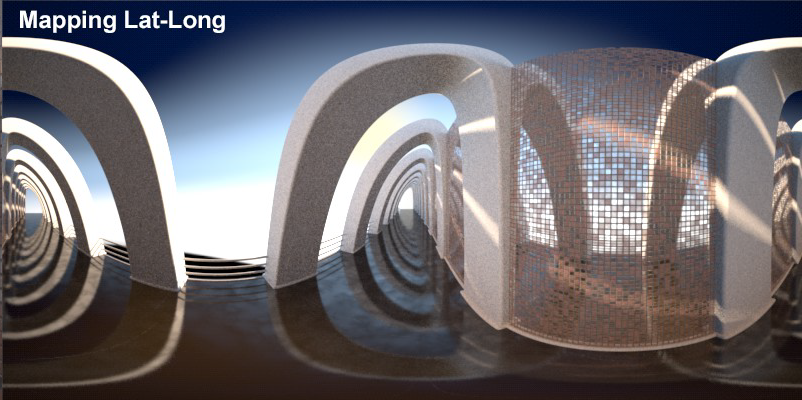 Wenn Sie sich die Szene um die Kamera herum vorstellen, muss die gesamte Umgebung auf ein rechteckiges Bitmap projiziert werden. Definieren Sie die Methode durch Auswahl aus den folgenden Mapping-Optionen: