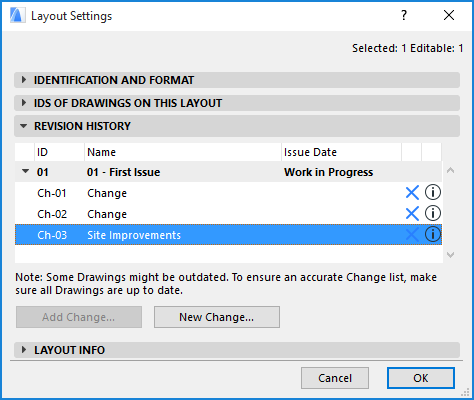 See also Create New Change on a Layout Revision and Revision History Data on Layout and in Layout Settings.