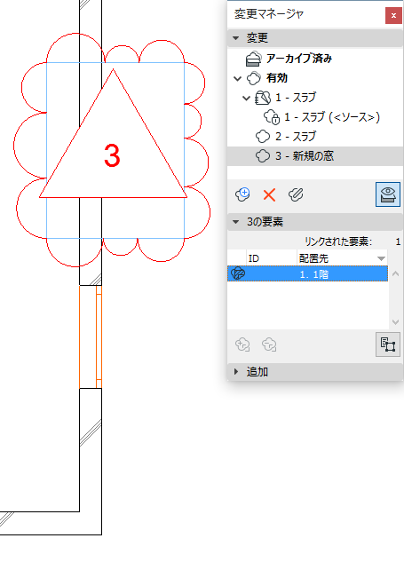 注記:「リンクなし」として配置された変更マネージャは、リスト表示されません。リンクされていない変更マーカーは、リンク先のないグラフィック要素です。ただし、いつでも既存の変更にリンクすることができます。