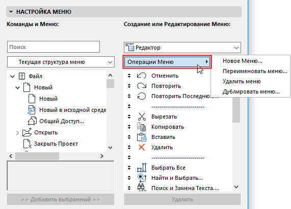 Добавление/Удаление/Изменение Команд Меню