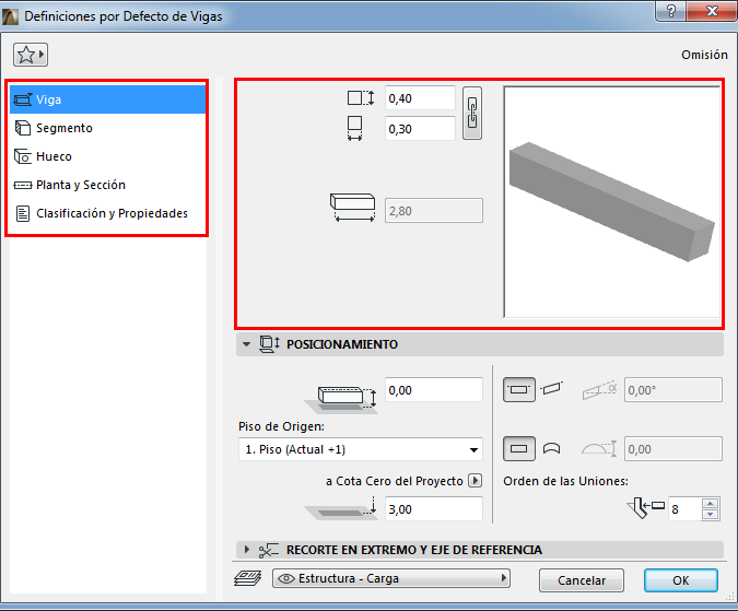 Definiciones de la Herramienta Viga: Previsualización y Posicionamiento