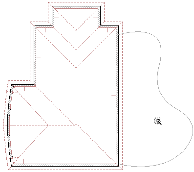 Activate the Roof tool (Multi-plane method) and click with the Magic Wand on the edge of the Wall to instantly create a Roof whose pivot line traces the Wall polygon.