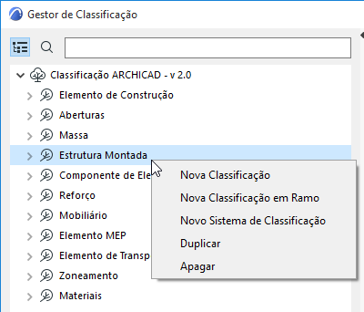 Use os botões na parte inferior de Opções > Gestor de Classificação para exportar e importar um conjunto de propriedade de classificações (quer todas as classificações ou aqueles apenas selecionadas) entre os Projetos do ARCHICAD, a partir de um arquivo XML ou um arquivo ARCHICAD.