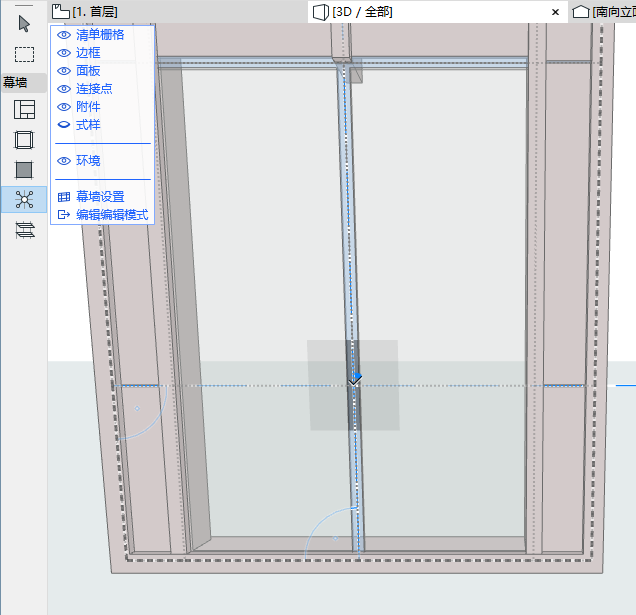 6。点击以定义幕墙的哪一侧要放置连接点, 它将放置在所点击最近面板的连接点上。