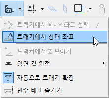 •절대 좌표는 사용자 원점에서 측정됩니다. (사용자 원점을 재설정하지 않았다면, 프로젝트 원점과 동일합니다.) "트래커에서 상대 좌표" 토글을 껐다면, 트래커는 절대 좌표를 표시합니다.