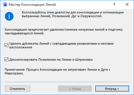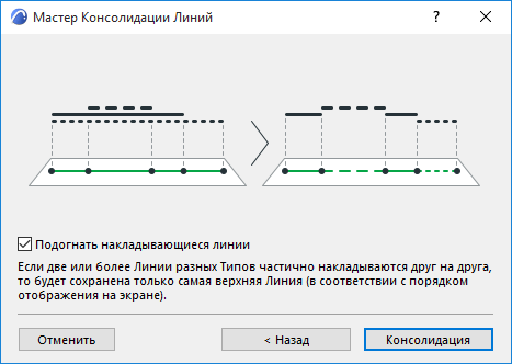 При первом выборе этой команды будет инициирован мастер консолидации линий.