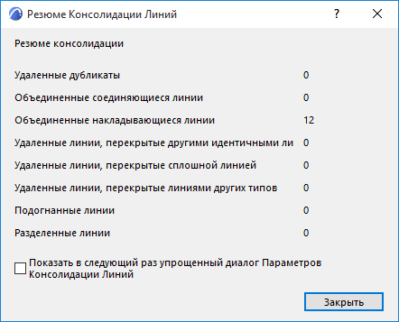 Нажмите кнопку Консолидировать для выполнения Консолидации Линий и вывода информации о результате операции.