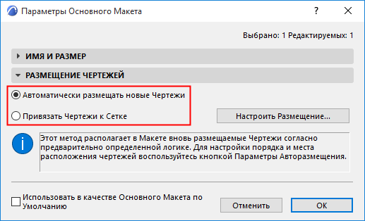 Примечание: По умолчанию используется вариант Авторазмещения. Если вы размещаете в макете только один чертеж, то он будет помещен в центре макета.