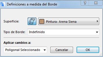 4.Utilice los controles para ajustar la Superficie y el Tipo de borde según sea necesario.