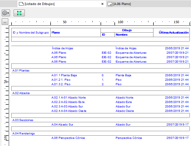Por ejemplo, si publica planos de Alzado, así como su Hoja Índice, el plano de Hoja Índice publicado se verá así: