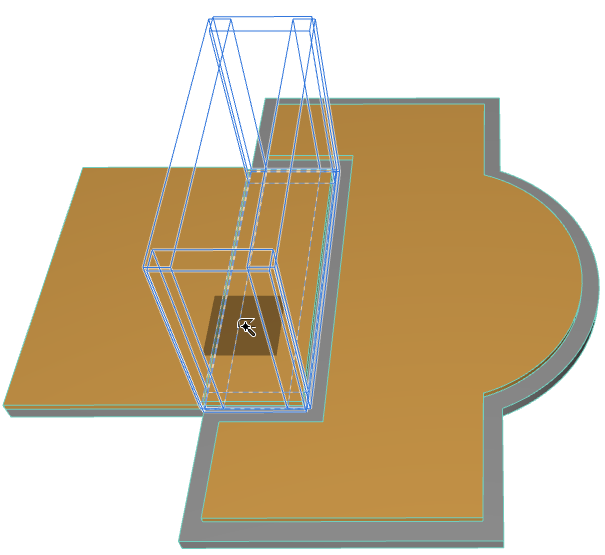 Enquanto a barra de espaço é pressionada, mova o cursor para ver o feedback sobre os possíveis elementos resultantes. Aqui, se você estiver usando a Vara Mágica para criar Paredes no topo de duas lajes que estão interceptadas, o feedback mostra as possibilidades: