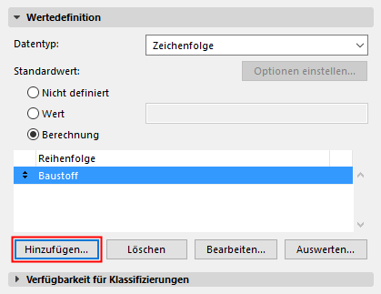 –Klicken Sie doppelt auf den Parameter oder klicken Sie auf Hinzufügen, um diesen dem Berechnung-Editor hinzuzufügen.