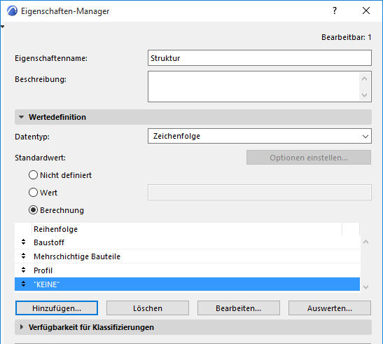 1.Erstellen Sie im Eigenschaften-Manager eine Neue Eigenschaft mit dem Namen Struktur.