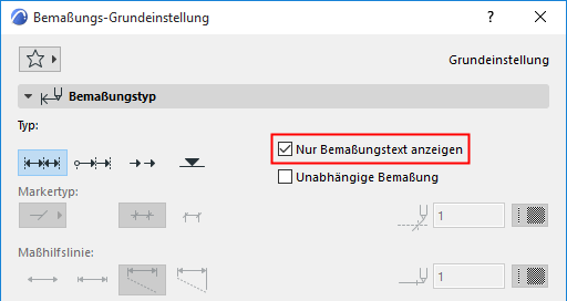 Bei linearen, radialen oder Winkelbemaßungen haben Sie die Möglichkeit, nur Bemaßungstexte anzuzeigen.