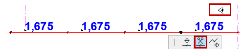 –Wenn Sie auf einen Punkt geklickt haben: Die Maßlinie wird an diesem Punkt unterbrochen. Klicken Sie auf den Augapfel-Cursor an der Seite, die versetzt werden soll.