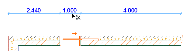 –Wenn Sie auf ein Segment geklickt haben: Die Maßlinie wird an dem nächstgelegenen Endpunkt des angeklickten Segments unterbrochen. Sie können die neu gesplittete Linie an eine neue Position verschieben.