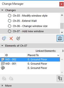 2.In the Change Manager, select the Change to which you want to link the selected element(s).