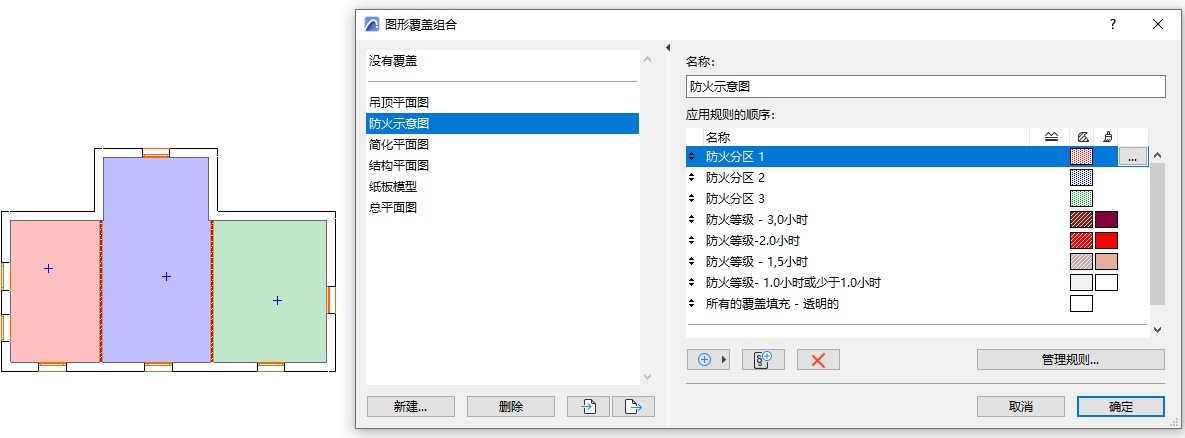 圖形覆蓋組合和翻新過濾器與每個視圖的設定一起儲存。在任何視圖中,圖形覆蓋組合的規則首先被應用。通過翻新過濾器應用的規則是最低的優先級。