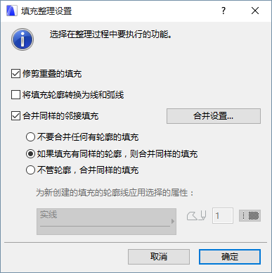 合併設定:如果您選擇了“合併同樣的鄰接填充”,合併設定按鈕則被啟動。點擊來訪問填充合併設定,對合併過程中產生的線定義屬性。
