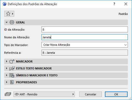Use a ferramenta Alterar para colocar um Marcador de Alteração (nuvem e / ou marcador) em qualquer uma das seguintes janelas: Planta; Seção; Elevação; Elevação Interior; Documento 3D; Planilha; Detalhe; ou a janela Leiaute.