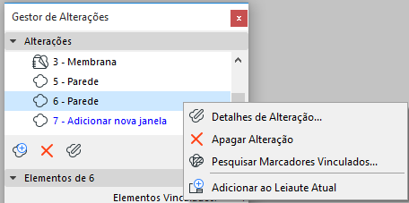 Com a janela de Leiaute ativa, clique com o botão direito numa Alteração no Gestor de Alterações para adicioná-la ao Leiaute atualmente ativo.