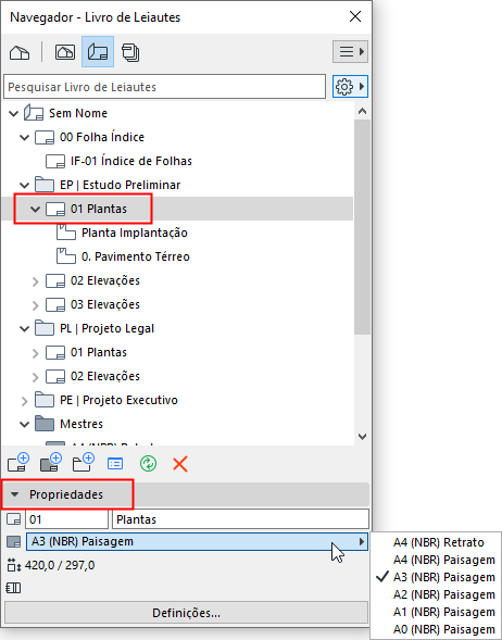 O Archicad inclui vários modelos de Leiaute Mestres. Você pode utilizar um destes Mestres predefinidos, ou criar um pessoal.