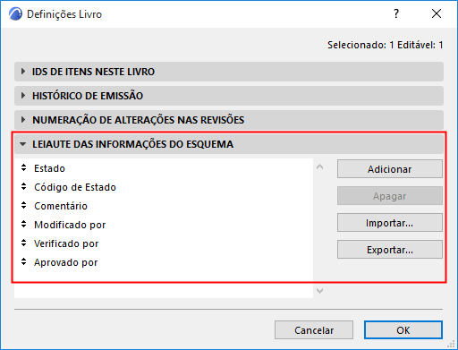 Caixa de Diálogo Definições de Livro