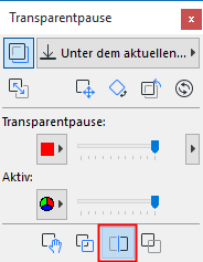 Beachten Sie den Umschalter Schraffuren und Raumflächen transparent machen unten in der Palette Transparentpause: Aktivieren Sie diesen Umschalter, um Schraffuren und Raumflächen in den Transparentpausen und Aktiven Zeichnungen transparent zu schalten. Auf diese Weise “entdecken” Sie Informationen, die andernfalls durch eine Schraffur verdeckt gewesen sein könnte.