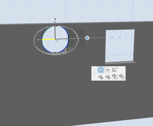 Wie bei anderen Konstruktionselementen können Sie mit Verschieben, Drehen und Spiegeln die Öffnungsposition in jeder Ansicht frei verändern. Als Ergebnis kann sich die Einstellung für die Öffnungsausrichtung (siehe Infofenster) auf „Individuell” ändern.