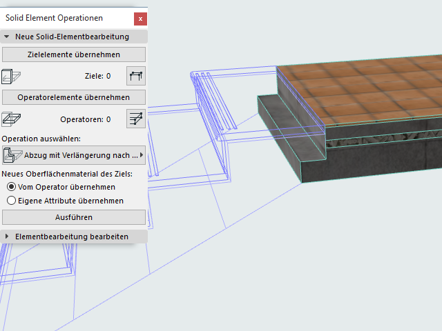 8.Wählen Sie eine Operationsart aus: Abzug mit Verlängerung nach oben.