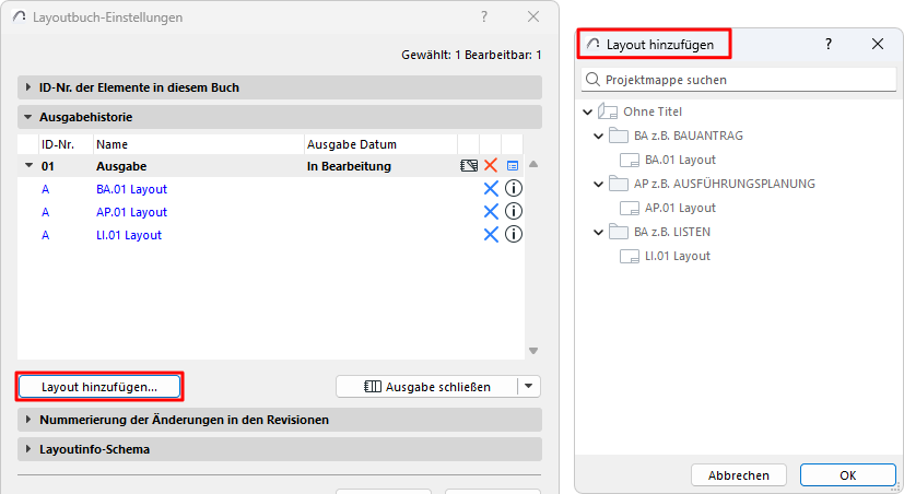 –Erste Ausgabe des Projekts: Für die allererste Ausgabe des Projekts sind alle Layouts des Projekts “neu”, daher werden alle Layouts der Ausgabe hinzugefügt.