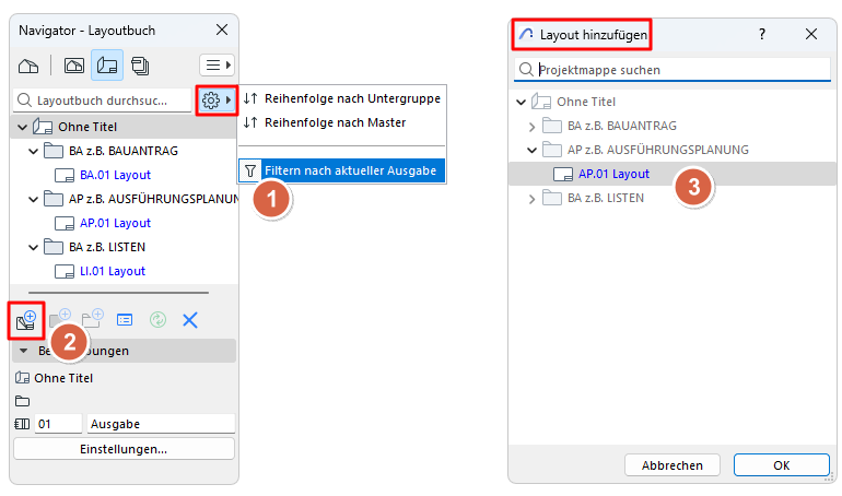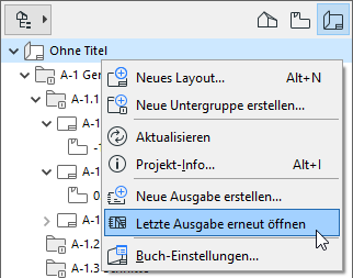 oder vom Navigator-Layoutbuch im Modus “Baum nach aktueller Ausgabe”: