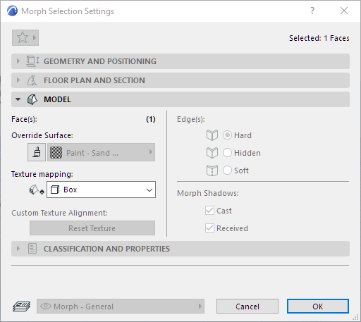 Sub-element selection is also reflected in the Info Box and Morph Selection Settings.