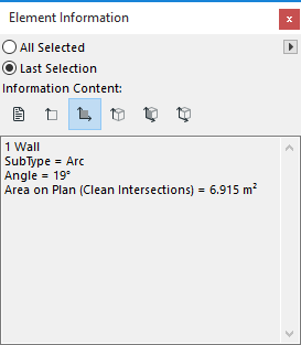 The Information Content buttons in the top section of the palette define what information will be shown. If none of the buttons is active, only the number and type of the selected elements is displayed.