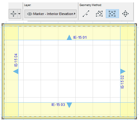 The resulting rectangle/line/polyline represents the Room Boundary of the Interior Elevation group.